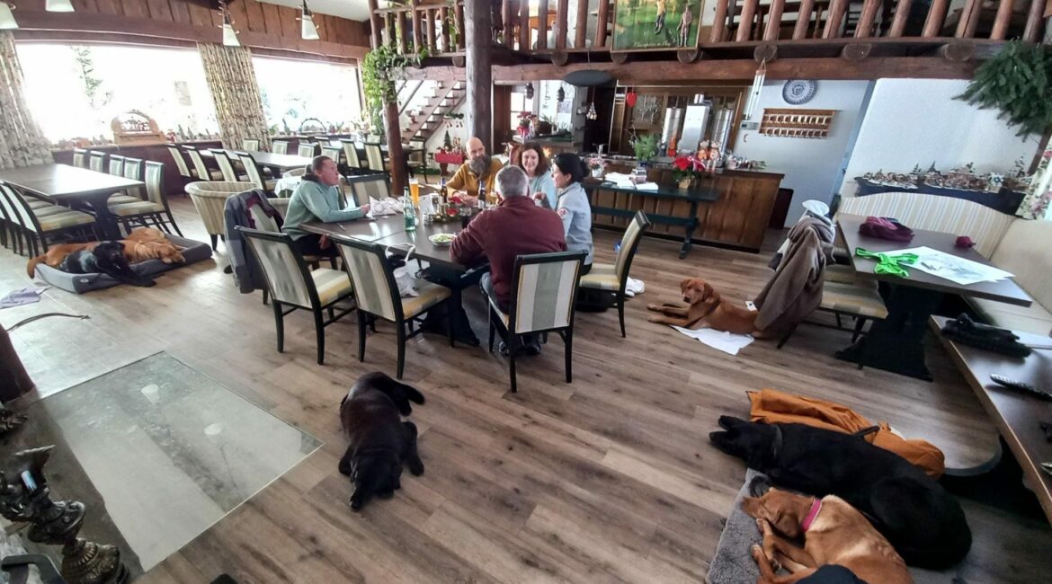 Die 2-Beiner haben dann an einem großen Tisch Mittag gegessen. Sie haben alle gesagt dass das total lecker war. 😀